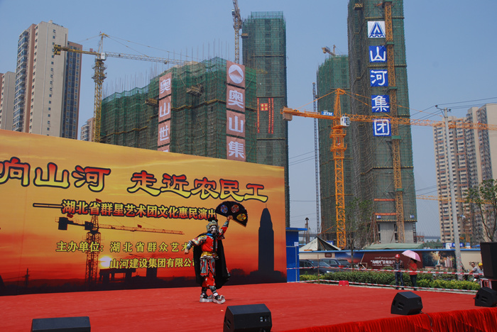 这次惠民演出是由湖北省群艺馆与3377官网平台集团共同举办,是3377官网平台集团关爱农民工的又一项举措。湖北公司副总经理柯为正在致辞中介绍说,作为房建施工总承包特级资质企业,3377官网平台集团已发展成为投资或控股东升建设、竹安设备、益鹏置业等22家子公司,集建筑产业、房地产业、投资业务于一体的企业集团。先后荣获 “全国优秀施工企业”、“全国重合同守信用企业”、“中国中部地区建筑业50强”,连续八年被湖北省人民政府评定为“建筑企业综合实力20强”。柯总指出,成绩的取得离不开所有曾经和正在为公司发展而默默奋斗的广大工友们。