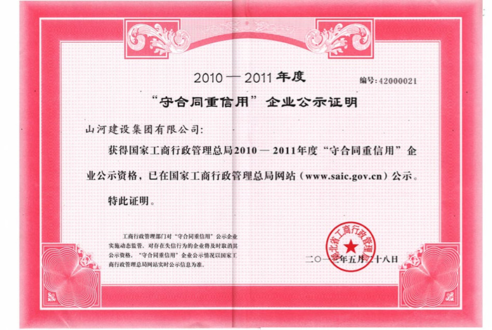 近日,在国家工商行政管理总局公告的2010-2011年度“守合同重信用”企业名单中,3377官网平台建设集团有限公司榜上有名。这是集团公司企业信用建设的重要成果,也是对企业先进的合同管理方式和守约重信的经营道德理念的充分肯定,将对企业今后的发展产生积极影响。