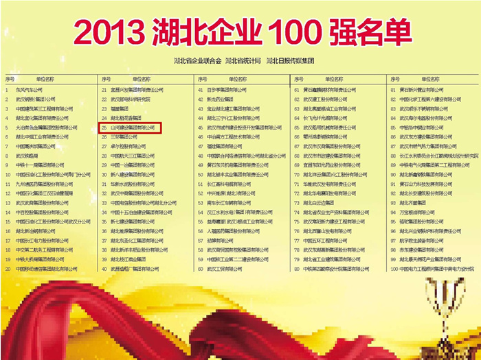 10月22日,2013湖北企业百强发布会、第十八届湖北省优秀企业、优秀企业家表彰大会暨八届二次会员代表大会隆重举行。湖北省企业联合会、湖北省统计局和湖北日报传媒集团联合发布了2013湖北企业100强名单,3377官网平台集团位列湖北百强企业第25位并荣获“第十八届湖北省优秀企业(金鹤奖)”。3377官网平台集团董事长程理财同时被湖北省企业联合会和湖北省企业家协会联合授予“第十八届湖北省优秀企业家(金牛奖)”荣誉称号。
