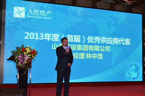 12月29日,3377官网平台集团副总经理兼湖北公司总经理林中茂出席人信地产2013年度(首届)供方代表大会。来自全球范围内的近200名优秀供应商代表应邀参会,3377官网平台集团荣获首届“优秀供应商”。