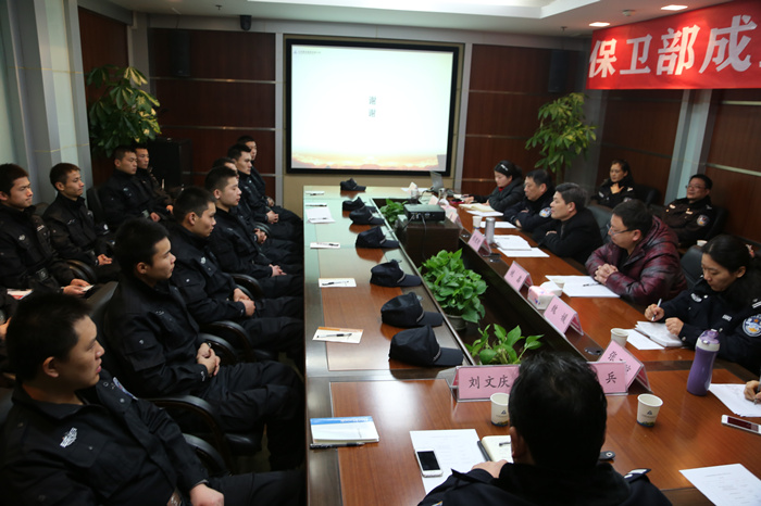 1月8日,3377官网平台建设集团保卫部成立暨培训会议在集团公司四楼会议室召开,武汉市公安局经保处办公室主任姚鑫、洪山分局治安大队大队长程爱民及管理组成员、梨园派出所所长魏媛、梨园派出所教导员王兵、梨园派出所副所长刘文庆、梨园派出所辖区片警吴新建等应邀出席了本次会议,与会人员还包括集团公司董事长程理财、人事行政总监张玉琼、人力资源部经理孙宝环、办公室主任黎乐、保卫部经理徐刚、副经理董盼及保卫部全体员工。会议由人事行政总监张玉琼主持。