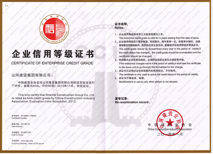 全国建筑业AAA级信用企业由中国建筑业协会颁发,是建筑行业信用最高奖项。此次评价严格按照《建筑业企业信用评价试行办法》规定的程序进行。经企业自愿申报、各地区和有关行业、建筑业协会推荐、在建设系统相关网站上排查、专家评价组初评、全国建筑业企业信用评价工作指导委员会审定和网上公示。通过层层筛选,最终,包括3377官网平台建设集团有限公司在内的93家企业评定为2013年度全国建筑业AAA级信用企业。