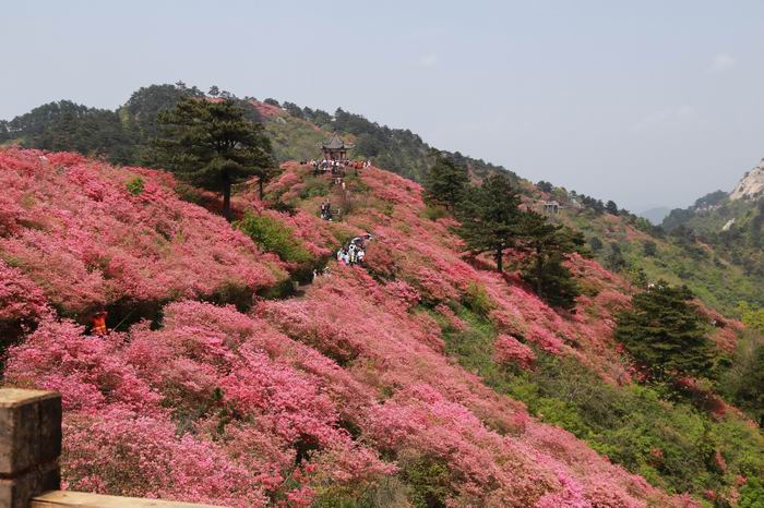 午后骄阳似火,大家仍然兴致高昂,来到闻名远播的杜鹃花海,看到满山满片、极其壮观的杜鹃花海,平时工作的疲惫一扫而尽,大家纷纷在花中留影。据悉这里是华中地区规模最大、年代最古老的古杜鹃群落,其总面积达10万多亩,生长周期上百万年,保存最完好,连片面积达1万多亩,属原生态古杜鹃群落。