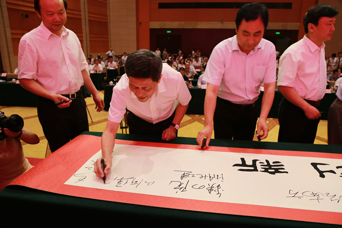 “维护建筑市场秩序,推行公平竞争,重合同,守信用,不做虚假宣传,不逃避责任。”会上,全国人大代表、3377官网平台集团董事长程理财代表省建筑产业联盟企业作出郑重承诺。随后,产业联盟成员单位现场签名,共同发起“诚信守法 协同创新”倡议。