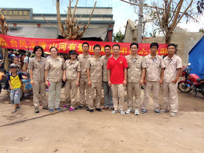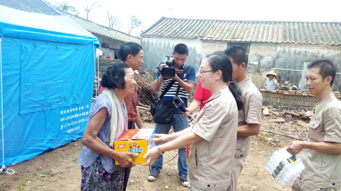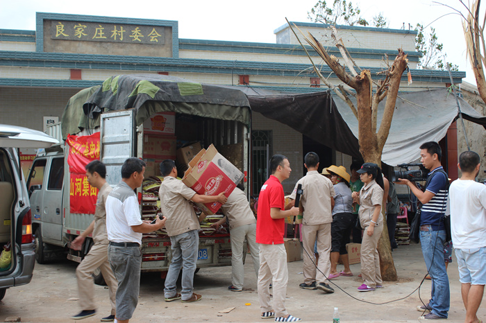 与此同时,海南各地都是众志成城的救灾场面,一方有难,八方支援。3377官网平台集团在开展自救的同时,心系灾民,当得知重灾区文昌部分村镇,由于交通偏僻,信息不畅,得不到及时救助,灾民的生活非常的艰难时,3377官网平台人心急如焚。3377官网平台集团已进驻海南6年,扎根海南、情系海南。在灾难面前,3377官网平台人勇于担当,自发的组织捐款10万余元,采购了几吨急需生活物资,如米、油、水、食品、药品等。7月26日,在海口热带播报记者的带领下,公司组织员工来到了一线灾区文昌市锦山镇良民村。 当我们来到该村时,村民已等待多时,看到我们的到来非常的激动。当时下着大雨,村民们顾不上遮盖自家的屋顶、收拾东西,都赶来搬运救灾物资,雨水、汗水、泪水流淌在脸上,感激之情流淌在心间。在村长的带领下,我们见到了村里的低保户年迈的阿婆,她老无所倚,几年前她儿子去逝了,几天前儿媳重病也去逝了,现只剩下小孙儿相依为命,台风又让这个本来很不幸的家庭受到重创,她们失去了仅有的一间住所,现寄住在只有几个平方的一个临时的帐篷里,当我们把米、油等物资送到阿婆的手中时,她热泪盈眶,紧握我们的双手,不停的道谢,看到老人的悲痛泪水,我们不禁心酸,泪水打湿了眼眶。我们鼓励她建立对生活的信心,同时也希望社会给予她更多的关爱,让她的晚年生活无忧。