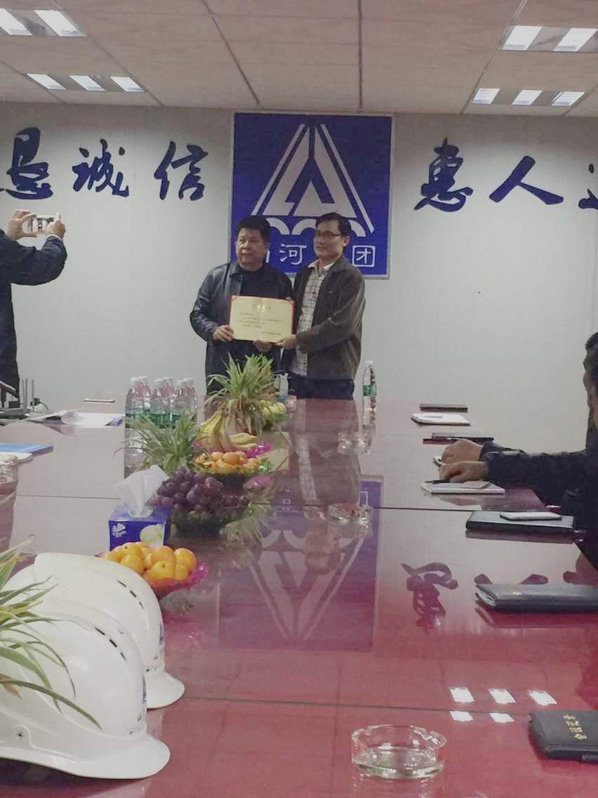 1月22日,海口市质量安全监督站刘勇一行领导来到新城吾悦广场项目部颁发海口市“2015年度优秀项目经理”奖,项目经理汤永兴荣获“优秀项目经理”荣誉称号。项目参建各方对项目经理汤永兴表示热烈祝贺,并充分肯定了汤经理为项目部做出的努力和贡献。
