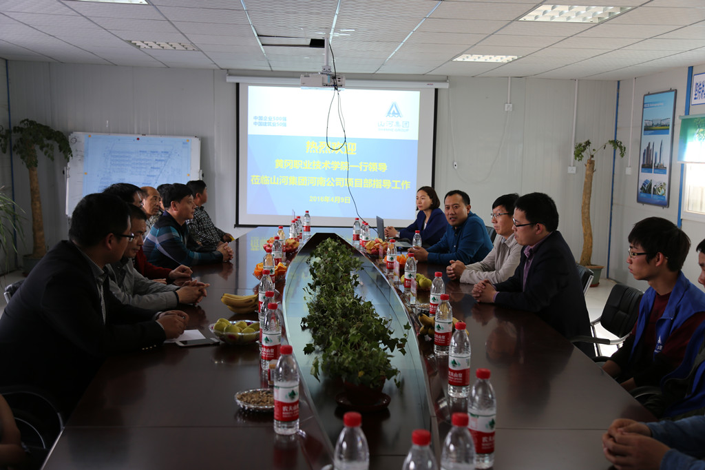 4月9日至10日,黄冈职业技术学院校党委副书记王维华一行来到河南公司开展工地党旗红、共建党支部、学生座谈会活动,河南公司总经理马文敏、副总经理余亮、刘军等全程接待。