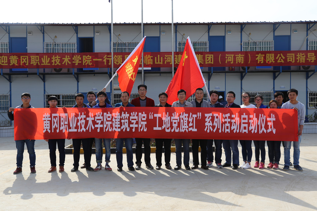 4月9日下午,工地党旗红活动正式启动。在河南公司副总经理刘军的陪同下,黄冈职业技术学院建筑学院党总支副书记刘国峰一行看望了正在那里实习、工作的2016届毕业生,着重了解了实习生代表的实习及生活情况,对实习生代表束永祥、秦亮在项目部吃苦耐劳、踏实肯干的精神予以高度评价,并颁授了旗帜。