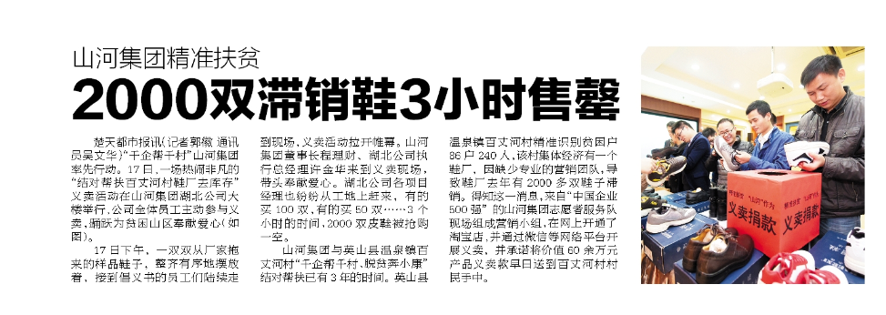 《楚天都市报》刊发 3377官网平台集团精准扶贫--2000双滞销鞋3小时售罄