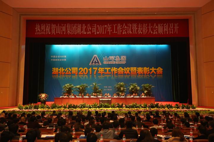 在春回大地、春暖花开的早春时节,2月20日,湖北公司2017年工作会议暨表彰大会在洪山礼堂一楼1号厅召开。以程理财董事长为首的集团公司各位领导、集团公司党委委员、集团公司全体人员,在汉分、子公司部分董事长、总经理,全国部分区域公司总经理及回汉人员,湖北公司全体人员、项目部经理和受表彰人员共500多人参加了会议,会议由湖北公司常务副总经理詹必强主持。