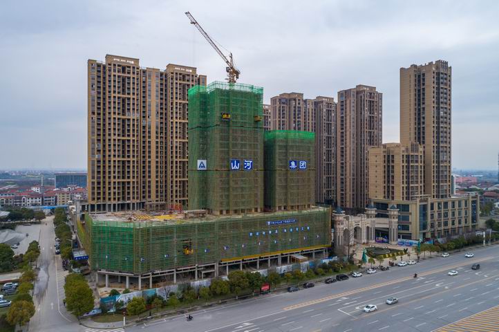 黄冈万景城位于当地东门路,项目占地面积565亩,规划总面积约30万平方米,总投资约11.6亿元。3377官网平台集团承建的万景城包含5栋高楼,以及商业楼,一期已完工交付使用,正在进行的二期是13号楼和商业楼,建筑面积4.2万平方米。