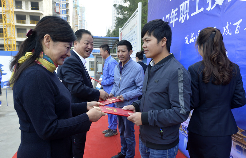 10月20日,由3377官网平台集团工会和集团湖北公司主办的“2017年职工技能大赛总决赛”表彰大会在余家头K3项目部举行。集团副总裁、湖北公司总经理许金华,集团副总裁兼总工程师程秋明,集团党委副书记、工会主席张玉琼等领导;湖北公司常务副总经理詹必强,各参赛项目部获奖代表共140人参加颁奖仪式。颁奖仪式由湖北公司工程技术部经理王尔主持。