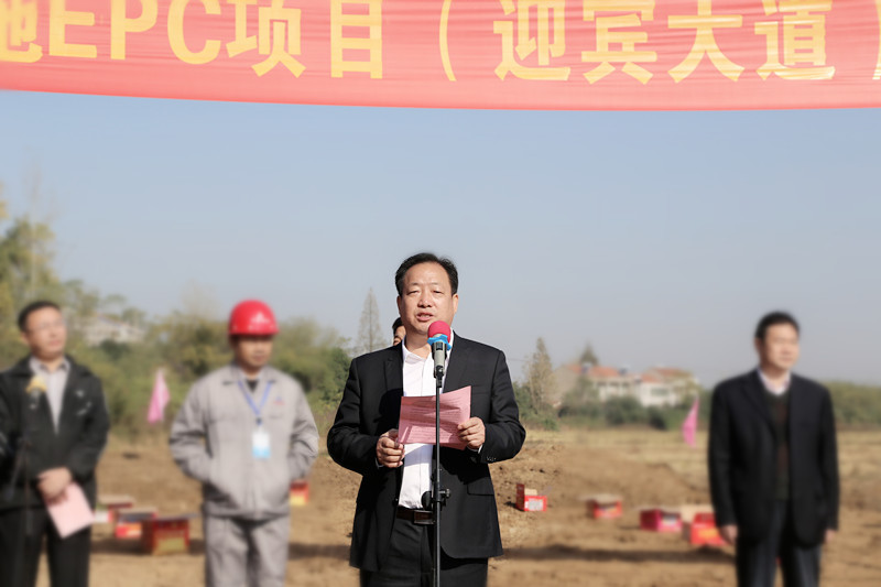 团风县委副书记、县政法委书记闫吉讲话。他指出,迎宾大道改造工程是团风县近年来最大的市政工程,也是团风6个EPC项目中最先开工的项目。迎宾大道的建设对城区与高速的对接、打造城市景观中轴线、建设团风美丽新城有着非常重要的意义。他要求,各级、各部门要明确责任,改进作风,确保工程顺利进行。