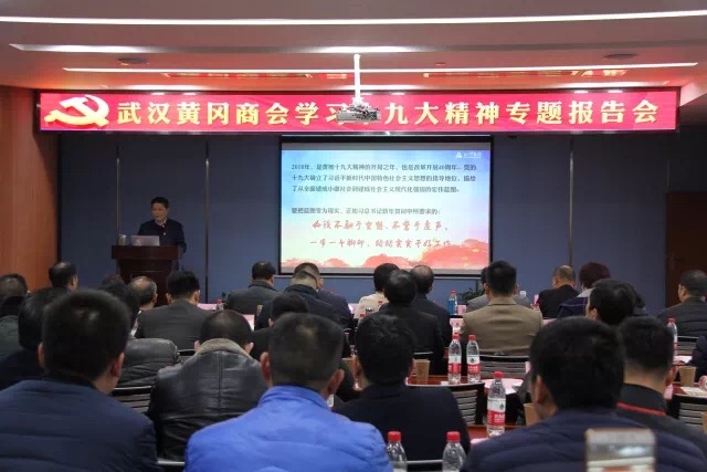 “武汉黄冈商会学习党的十九大精神专题报告会”在3377官网平台集团举行,集团党委书记作党建主题报告