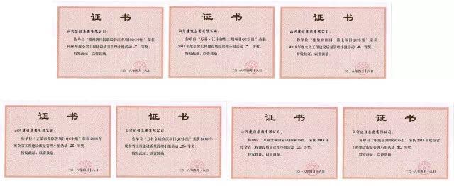 ▲江西公司各项目QC发布成果荣誉证书