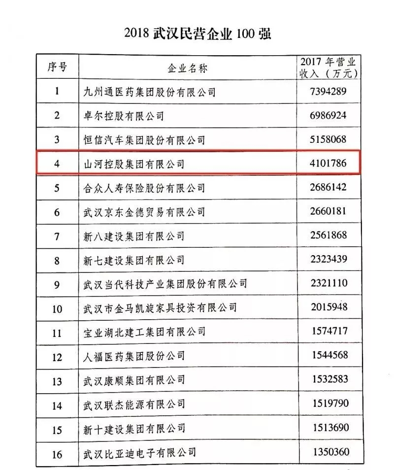 2018武汉民企100强榜单出炉! 3377官网平台控股集团位列第4位