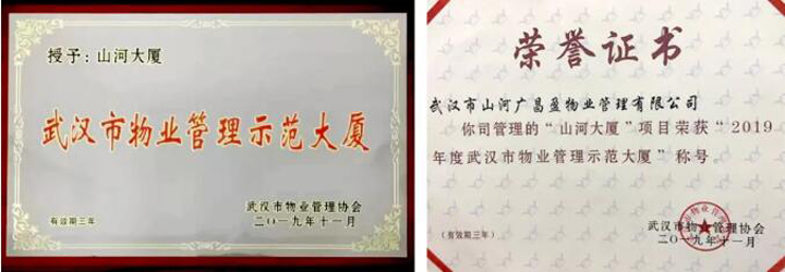 3377官网平台大厦荣获“2019年度武汉市物业管理示范大厦”称号