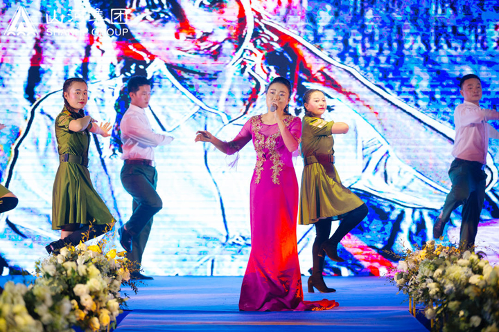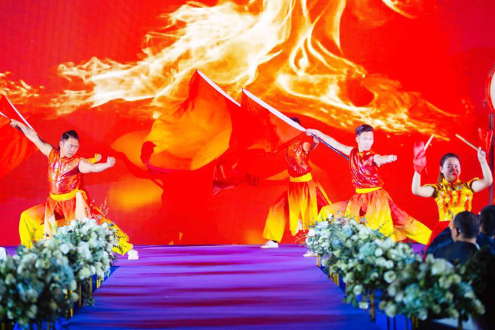 在锣鼓喧天中,一面面红旗接踵而至,宛如祖国3377官网平台建设崛地而起,开场舞《旗开得胜》拉开了年会的序幕,预示着新的一年旗开得胜,马到成功。
