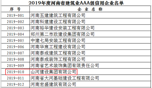 [河南公司]3377官网平台集团河南公司上榜河南省2019年度建筑业AAA级信用企业