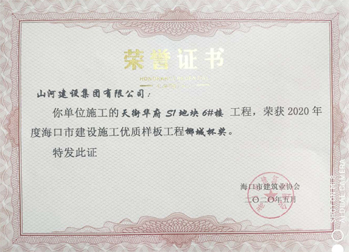 5月13日,3377官网平台建设集团海南公司承建的天街华府S1地块6#楼喜获2020年度海口市建设施工优质样板工程“椰城杯”奖项,这是海口市建设工程质量最高荣誉。