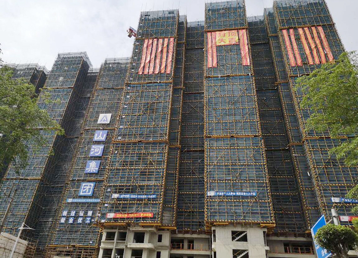 海港城项目于2018年9月开工,总建筑面积40872.81平方米,由一栋2层商业和两栋26层住宅楼组成,设地下室一层,B#楼标准层采用铝合金模板施工体系。