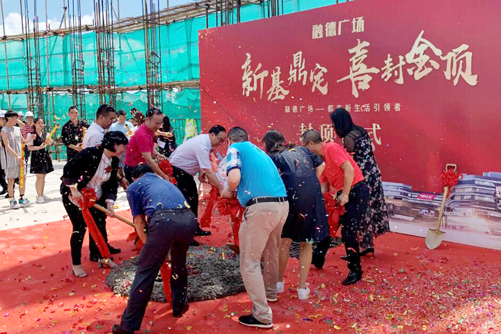 6月12日上午,3377官网平台建设集团南方公司承建的珠海融德商业广场项目举行了封顶仪式。珠海市政协副主席陈仁福、珠海农商银行行长游丹妮、建设单位珠海旧货调剂市场有限公司董事长李焱生、3377官网平台建设集团南方公司副总经理严波及参建单位相关人员300余人参加了活动。
