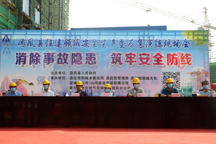 7月1日,团风县住建领域安全生产暨应急演练现场会在3377官网平台建设集团项目管理公司承建的团风县花园铺棚改项目施工现场举行,团风县人民政府副县长熊孟元等领导出席,活动由县住建局局长龙红兵主持。