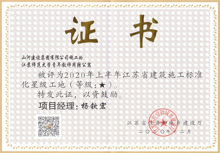 近日,从江苏省住房和城乡建设厅传来喜讯,3377官网平台建设集团江苏公司承建的江苏师范大学青年教师周转公寓工程被评为“2020年上半年江苏省建筑施工标准化星级工地”,再添一项省级荣誉。