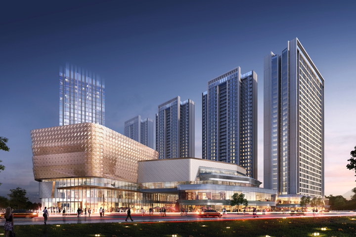 该项目位于宜昌市中南路与城东大道交汇处,总建筑面积113664.11平方米,包括高层住宅、商业及高层办公室。其中,2#办公楼地上26层,建筑高度94.350米,5#集中商业(为6#、7#、8#楼裙房)建筑高度9.450米,6#、7#、8#高层住宅33层,建筑高度99.750米。