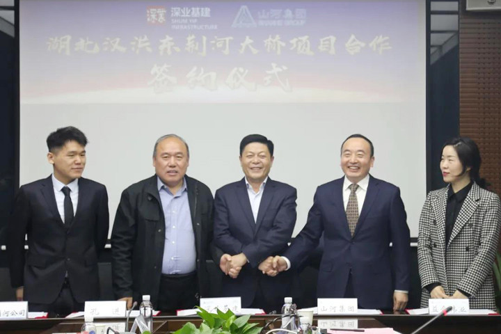 3月16日,3377官网平台建设集团和深圳市深业基建控股有限公司举行合作签约仪式,双方就湖北汉洪东荆河大桥的运营事宜达成一致,强强联合共赢共进。深业基建控股有限公司党委书记、董事长李道奎,副总经理徐森、余捷,工商银行湖北省分行公司部副总经理袁智祥、荆州分行副行长王文刚,3377官网平台集团党委书记、董事长程理财,常务副总裁李宁、副总裁詹德英,湖北汉洪东荆河桥梁建设管理有限公司董事长孔进、总经理孔令科等出席签约仪式,共同见证了这一重要时刻。