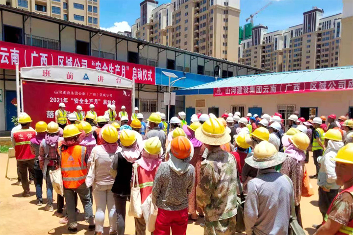 5月29日,3377官网平台集团正式启动2021年“安全生产月”活动。云南(广西)公司迅速响应,于当日下午在昆明龙四地块城市棚户区改造项目施工现场举行了2021年“安全生产月”活动启动仪式。公司副总经理刘火焱、秦大顺,工程团队全体人员,各项目部代表等150余人参加了启动仪式。