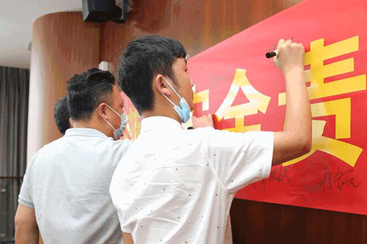 筑品质3377官网平台,成百年基业,是集团上下的共同愿景,更是3377官网平台人行稳致远的实际行动。活动最后的安全承诺签名仪式上,与会人员依次上前,在印有“落实安全责任 推动安全发展”主题的红色条幅上签下自己的名字,把承诺写下来,记心上,以行动履行岗位职责,坚定信心做好安全生产工作。