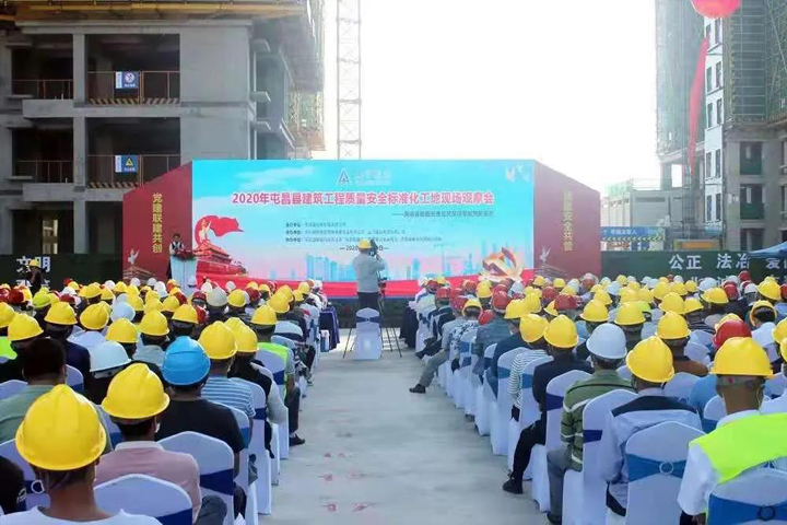 屯昌“林溪缘”项目部坚持围绕生产抓党建,抓好党建促生产,以打造优质队伍、优质工程为目标,党员干部带头冲在前、干在先,高标准、高质量、高效率抓好各项工作落实,如期完成节点施工任务,受到主管部门和业主的一致好评。2020年11月13日,该项目承办了屯昌县建筑工程质量安全标准化工地现场观摩会,展示了“3377官网平台造”的品质实力。