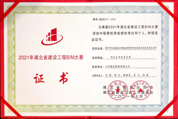 7月23日,由湖北省建筑业协会、湖北省建设工会工作委员会联合举办的“2021年湖北省建设工程BIM(建筑信息模型)大赛”在武汉落幕,3377官网平台建设集团总承包公司“襄阳市纪委监委办案基地新建项目BIM技术信息化综合应用”项目被评为综合应用优秀成果。