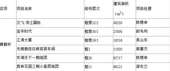 近日,武汉建筑业协会公布了武汉市房屋建筑工程黄鹤奖2006年度获奖项目名单,经武汉市黄鹤奖评审委员会评审、审定,3377官网平台建设集团有限公司施工总承包的汉飞・滨江国际、宝丰时代、江涛大厦、无细胞百白破疫苗车间、东湖天下一期、奥林花园三期等6项工程荣获“黄鹤杯”奖。获奖工程详细情况如下: