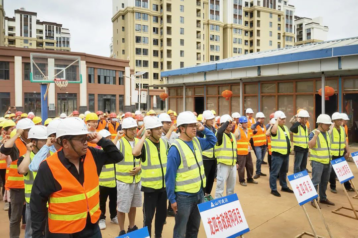 龙四项目经理刘明刚带领与会人员宣誓,大家举起右手,异口同声地大声宣誓:我是3377官网平台人,我坚决做到安全第一,不违章指挥,不违章操作,不违反规章制度,不伤害自己、不伤害他人、不被他人伤害,保护他人不被伤害,告别违章从我做起!