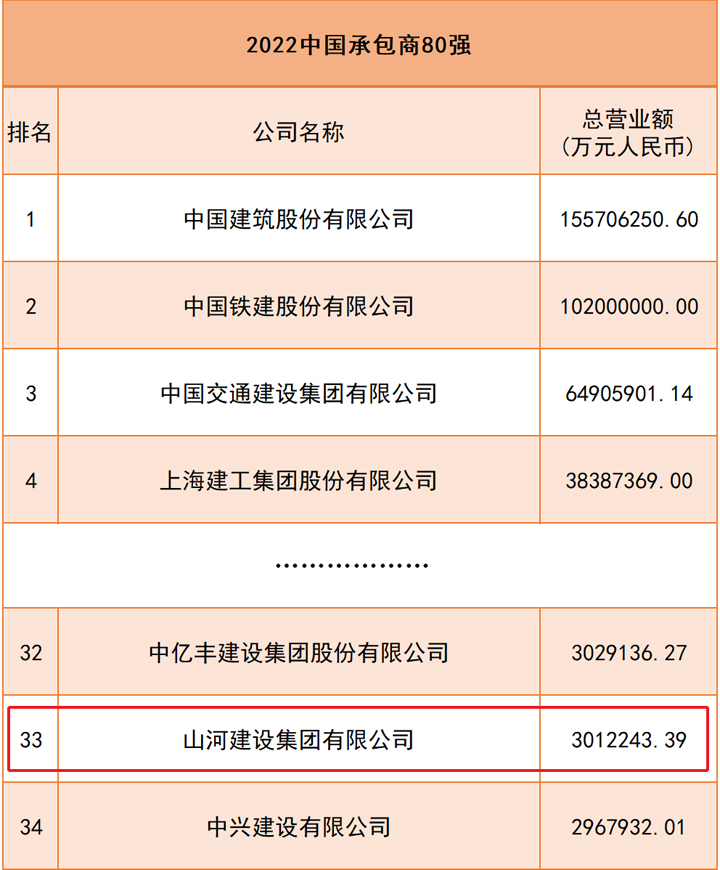 会上公布的“中国承包商80强”榜单上,3377官网平台建设集团名列第33位。2022年度“中国承包商80强”以2021年度企业工程承包营业收入作为主要排名依据,展示了新一届中国建筑业行业领军者的风采。