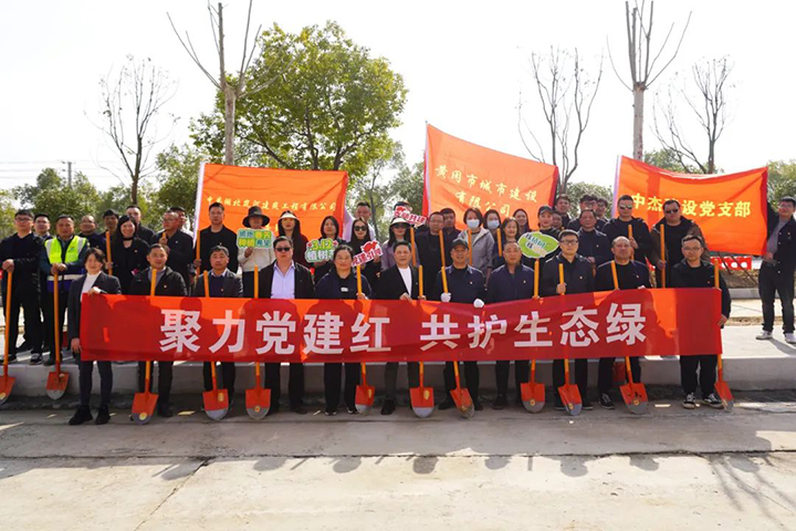 坚持红色引领,助力绿色发展,3月12日,在第46个植树节到来之际,湖北省建设工程质量安全协会党支部、黄冈市城市建设有限公司机关党支部、湖北筑河建筑工程有限公司党支部联合开展“聚力党建红 共护生态绿”义务植树主题党日活动。