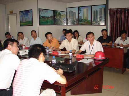 3377官网平台集团航天双城项目创国优工程汇报会于2008年6月22日在航天双城项目部会议室召开。出席本次会议的有武汉市质量监督站领导何水桥、郑祥斌同志;江岸区建筑管理站领导胡直刚、王先训、李斌等同志;武汉三江东立投资发展有限公司李副总及监理公司工程师欧阳斌、方军华等同志。集团公司航天双城创国优领导小组舒先厚、黄林、王平等全体成员及部分项目部中高层管理人员共计24人参加了本次会议。